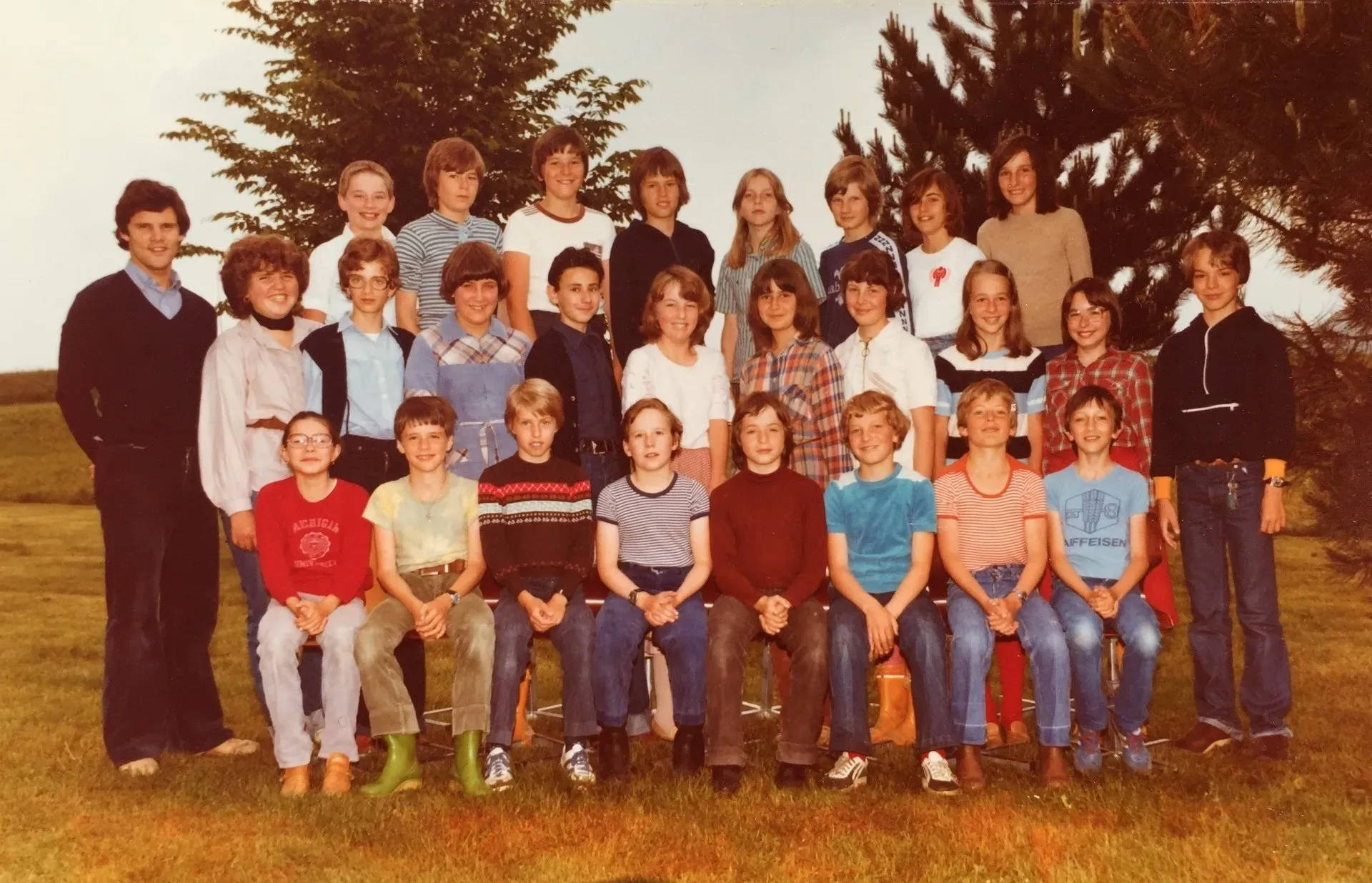 1973 beginnt für Géraldine die Primarschule (Grundschule) in Marly. Eine tolle Zeit mit Schulkollegen, die sie heute noch bei Klassentreffen mit ihrem Lehrer Pachoud trifft.