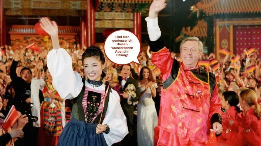 Im Oktober 1999 fliegt Géraldine Olivier nach Peking, China, mit dem Musikantenstadl. Eine Weltpremiere in China! Die chinesische Regierung machte es der gesamten Organisation nicht leicht, aber wir waren in der Geschichte Chinas die ersten Menschen die auf dem verbotenen Platz in Peking jemals auftreten durften. Ein ganz besonderes Erlebnis!